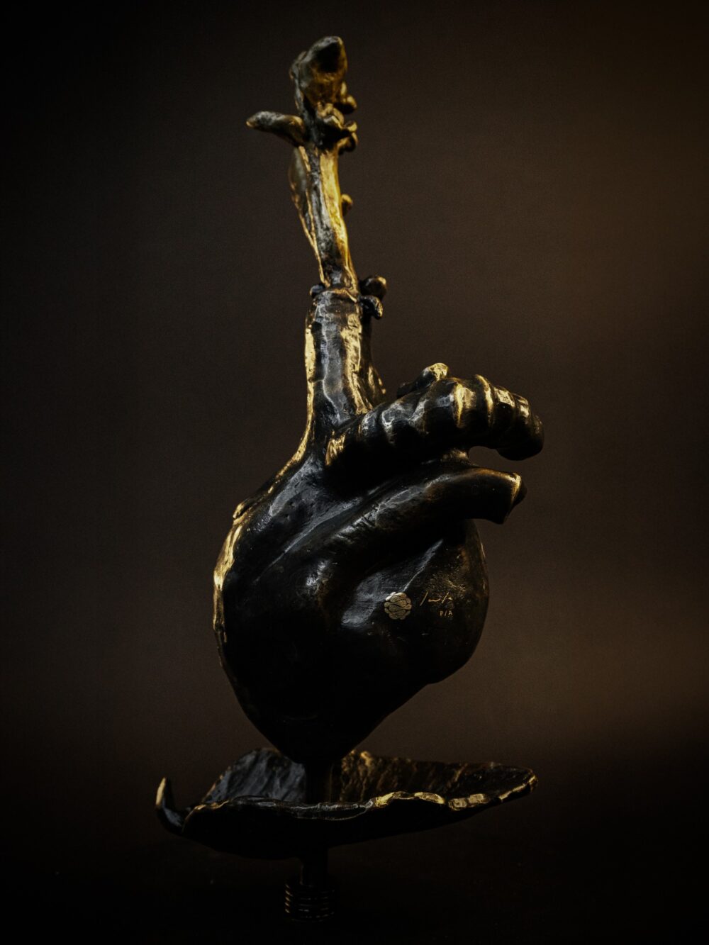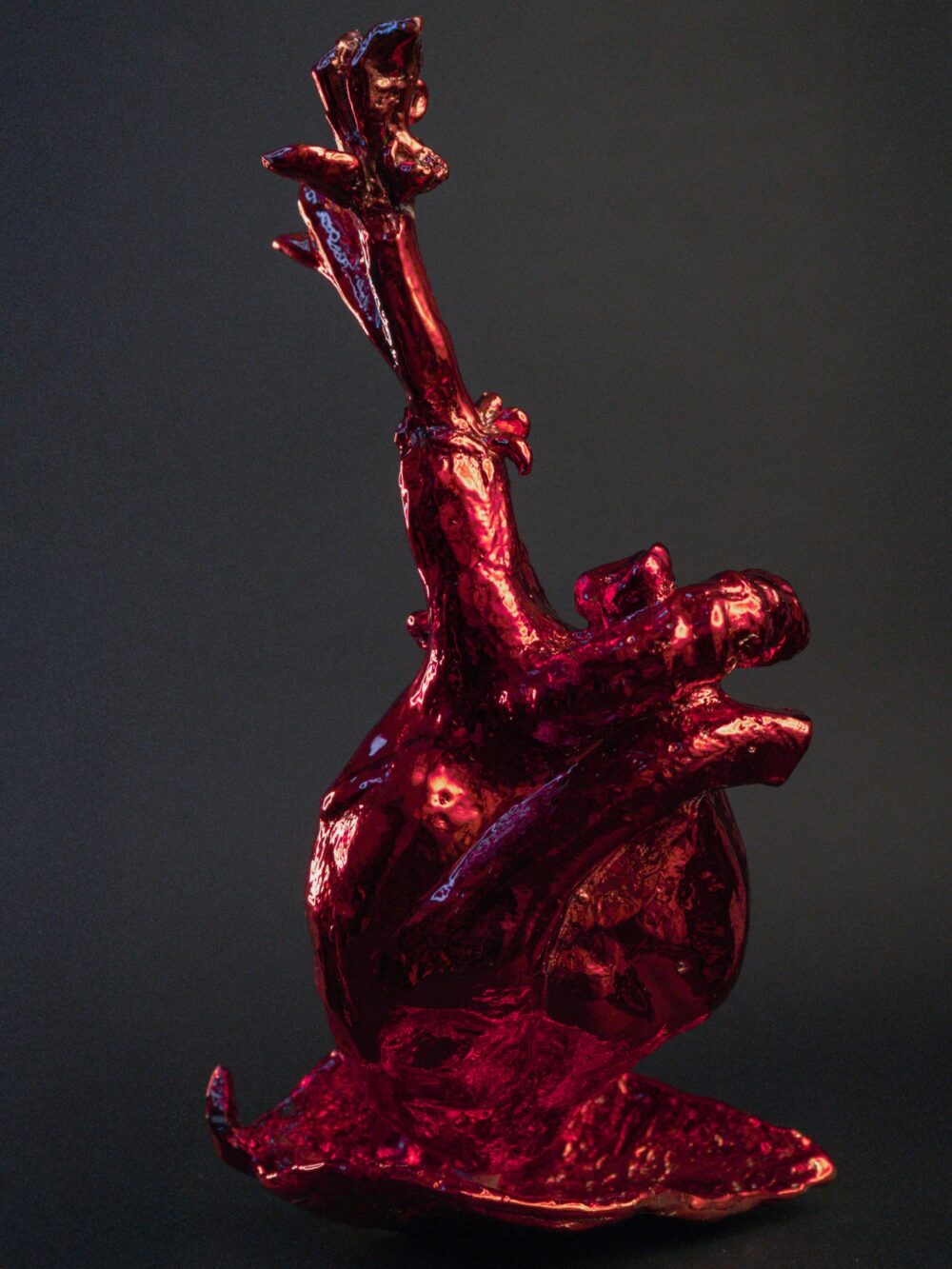 Aluminio a la cera perdida, Bronce a la cera perdida, Resina cromada roja